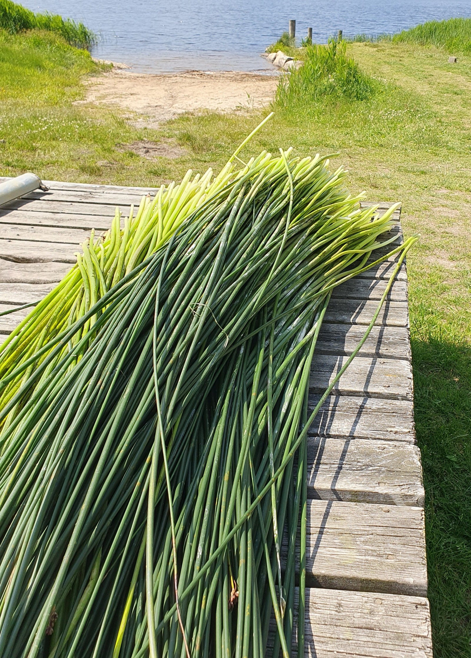Sjøsivaks (Schoenoplectus lacustris) (Eng. Common Club-rush eller Bulrush). Sivet er viltvoksende i brakkvann og ferskvann med gammel sjøbunn.